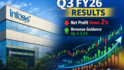 Market2 Min Read Raz3ronJanuary 14, 2026 Infosys Q3 FY26 Results: Net Profit Falls 2% While Revenue Guidance Rises Infosys has announced its Q3 FY26 results, revealing a mixed performance that reflects both challenges and optimism for the IT major. The… Discover More